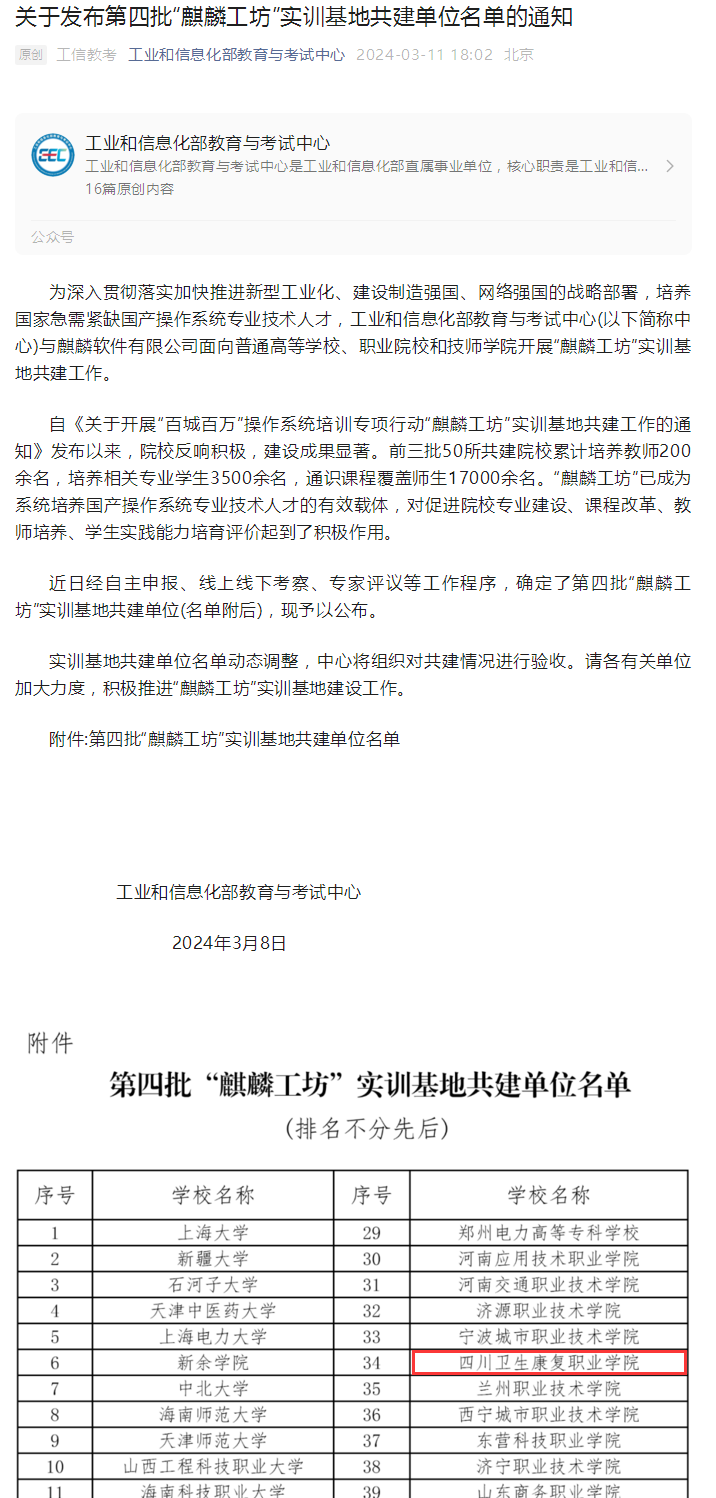 喜报:临床医技学院成功申报全国第四批“麒麟工坊”实训基地,系全省唯一。