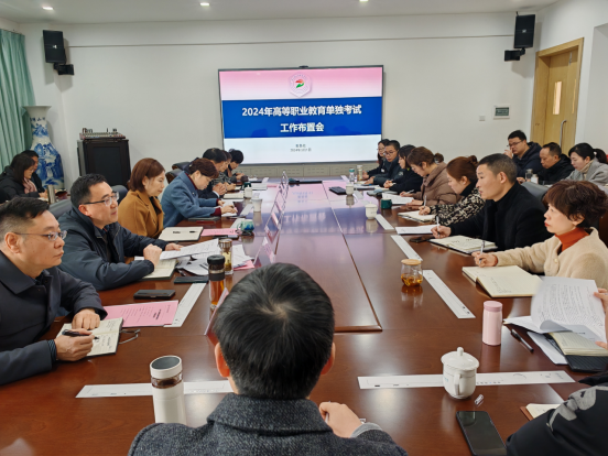 招就处通报了报名情况,教务处介绍了考点考务情况和2024年高等职业教育单独考试招生考务工作方案,明确了各工作组工作职责和要求。