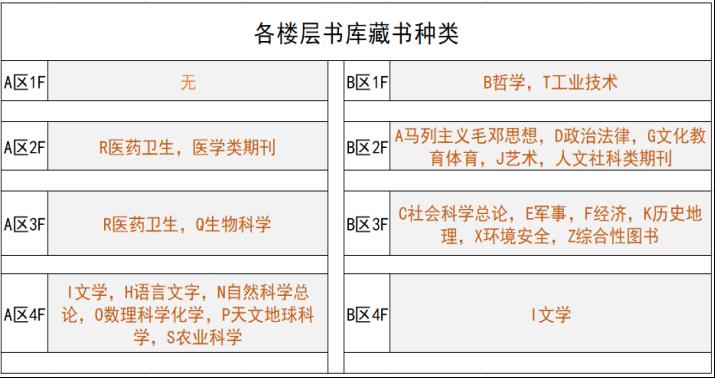 一、各楼层书库藏书种类
