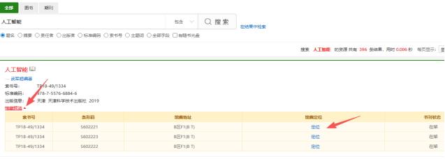 进入图书馆官网后,在检索框内输入书名,点击“搜索”,即可进入图书检索结果页面,点击馆藏预览和定位,即可看到图书所在书架的具体位置和导航路线,如图所示。