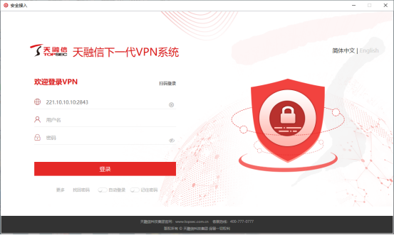 2.客户端安装好后可点击桌面图标“安全接入”