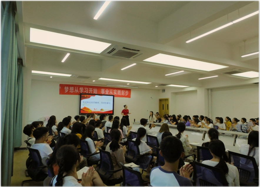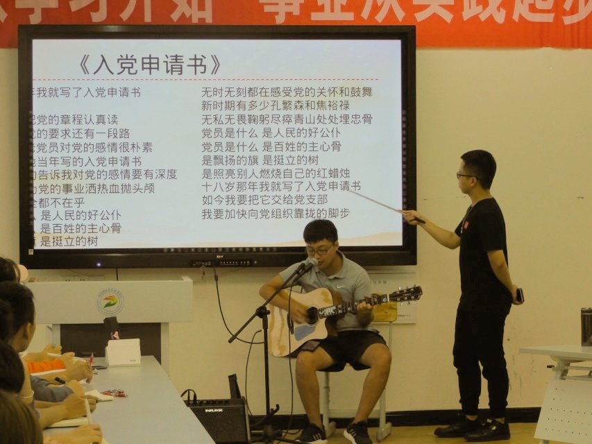 伴随着铿锵有力的歌曲《入党申请书》,“党员是什么,是人民的主心骨。党员是什么,是人民的好公仆……”将在场的80多位师生带入课堂意境。