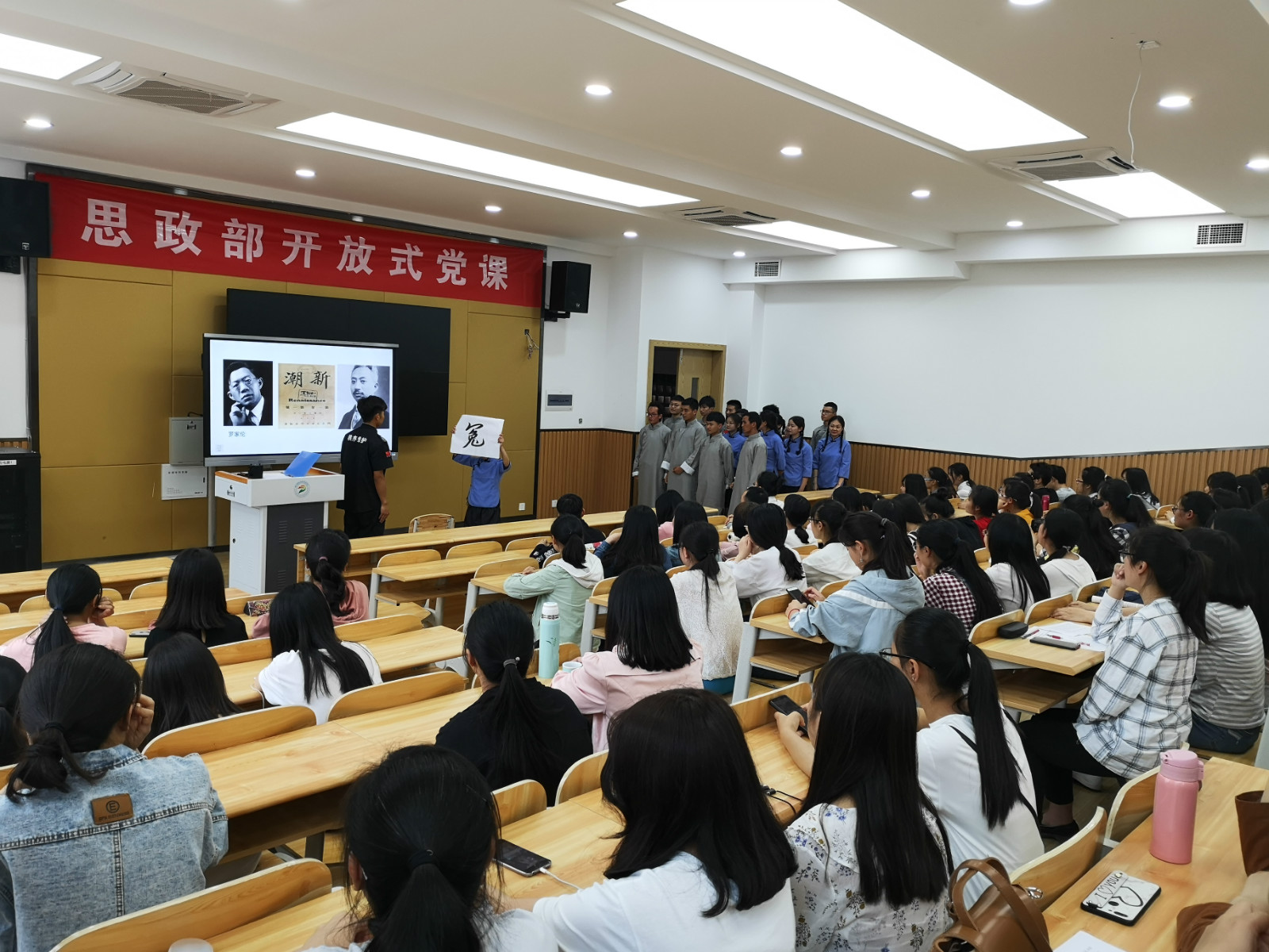 为纪念“五四运动”一百周年,弘扬五四爱国精神。4月10日下午,学院党办、团委、思政部在四教D203联合开展了以 “五四运动 神州觉醒”为主题的情景式开放式党课。党办、团委、思政部教师以及180余名学生代表参加。