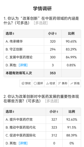 活动以问卷调查为突破口,全面剖析 353 名学生的答题数据。问卷涵盖学生对教学内容改革创新的认知、态度及需求等关键方面,意在精准洞悉学情,为教学决策提供科学依据。党员教师积极投入,深入分析学生的创新意识、思维及能力,多维度把握学情特点。