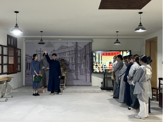 11月26日,马克思主义中国化时代化教研室组织“毛泽东思想和中国特色社会主义理论体系概论”(简称“概论课”)课程学生,以青年马克思主义学社为依托,60余名师生共同开启了一场沉浸式红色剧本主题展演,点燃了学生们的爱国烈焰。