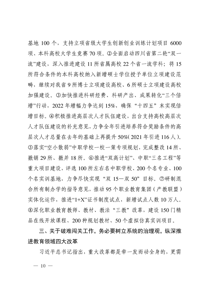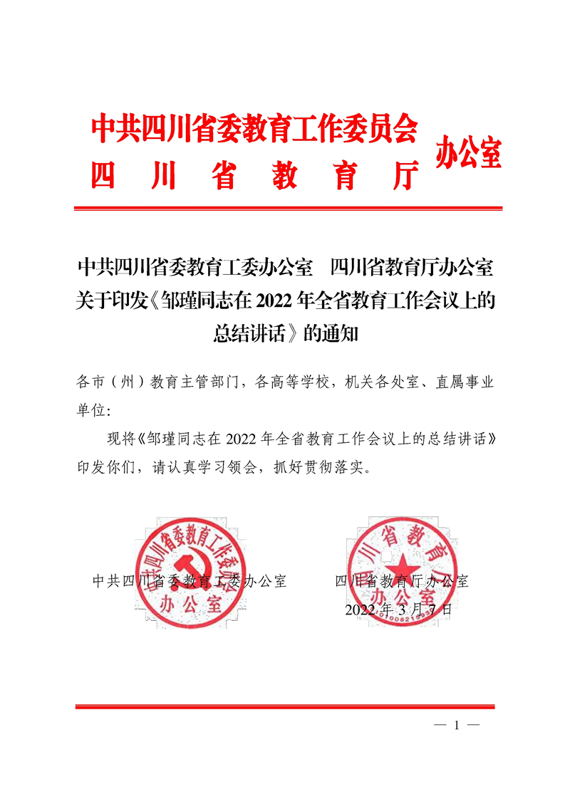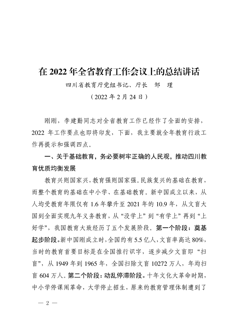 2.中共四川省委教育工委办公室 四川省教育厅办公室关于印发《邹瑾同志在2022年全省教育工作会议上的总结讲话》的通知