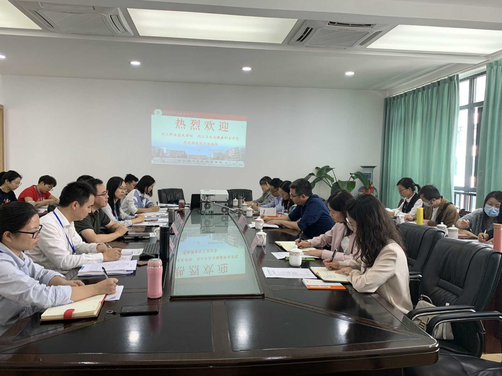 9月23日下午,内江职业技术学院、内江卫生与健康职业学院思政部教师一行13人到学院交流考察。学院副院长申奎出席交流会,并代表学院对两院教师的到来表示欢迎。我院思政部专兼职教师20余人参加会议。