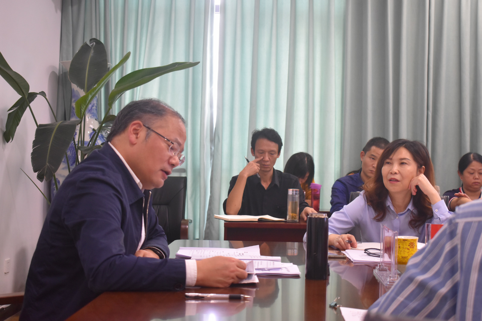 思政部副主任秦丹以串讲形式,从“人类正面临一场史无前例的战“疫”;中国从容应对疫情的自信理由;中国的大国担当与国际评价;认识疫情对健康行业和健康从业者带来的影响”四方面对思政开学第一课专题进行汇报。此专题是专门针对大一新生“量身定制”,让同学们领会中国从容应对疫情的自信理由,培育卫生类学生崇高的职业荣誉感和责任感。汇报完成之后,与会成员针对此内容进行集体研讨,为不断完善思政开学第一课专题建言献策。