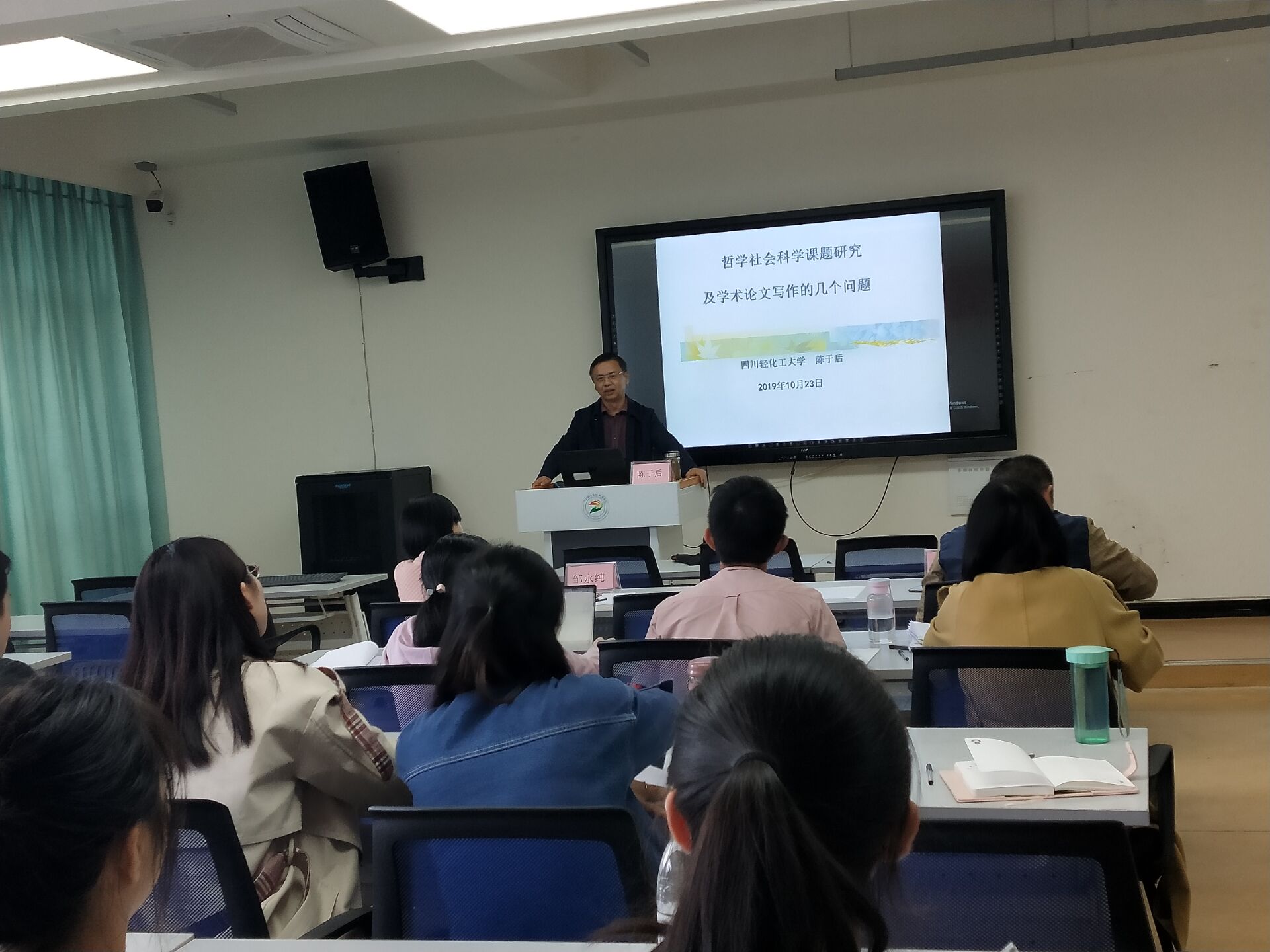 为提高教师科研能力,促进教师全面发展。思政部特邀四川轻化工大学学报编辑出版中心主任陈于后教授,于10月23日下午在4-A205开展了科研课题申报及论文写作专题讲座暨开题报告会。思政部全体专兼职教师参加。
