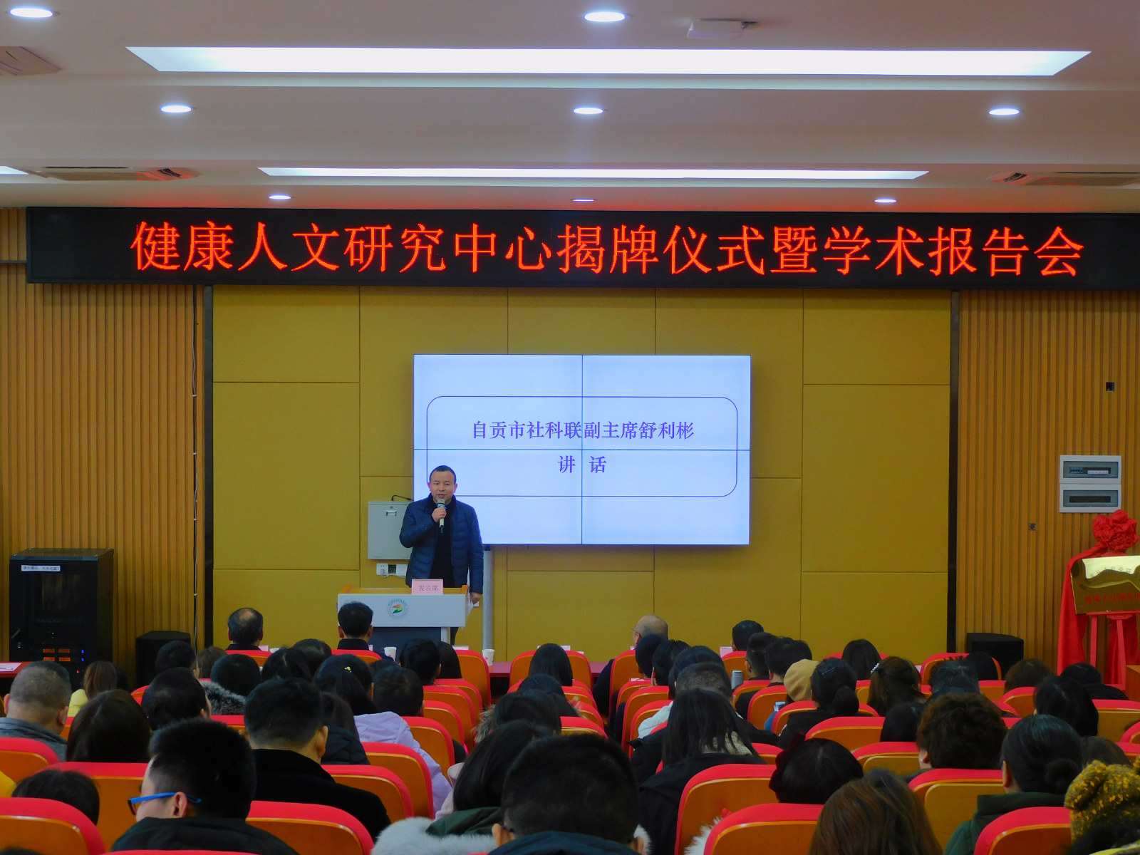 1月9日下午,由自贡市社会科学界联合会和taptap点点体育共建的市厅级科研平台“健康人文研究中心”(以下简称“中心”)成立揭牌仪式在学院1号楼B403隆重举行。市社科联副主席舒利彬、学院党委书记刘建辉共同为中心揭牌并讲话。揭牌仪式由学院副院长罗天蔚主持。