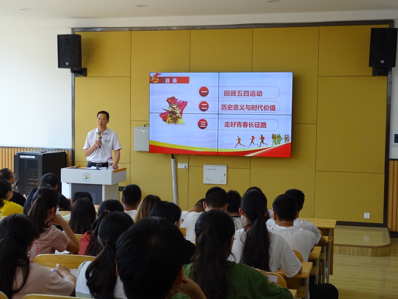 课堂上,黄院长以问题导向的授课方式,带领大家一起回顾了五四运动的整个过程,了解了五四运动的历史意义,认识了五四运动所蕴含的时代精神和价值,并以优秀师兄师姐的案例,推心置腹地勉励广大学生,继续发扬五四精神,将爱国、奋斗有机统一起来,在青春岁月的新时代建功立业。