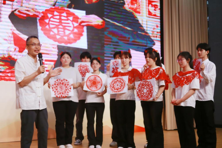 杨尚禄老师赞赏同学们对剪纸的热爱,但也提出如今剪纸的技艺多样化,同学们可以更聚焦盐都特色,大胆挑战非传统对称性剪纸。