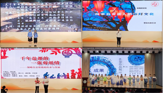 活动现场,遴选出的4支代表性实践团队通过实物展示、数字媒体、情景演绎等形式呈现调研成果盐文化组通过视频讲述自贡盐运文化传承与创新现状及对策建议,彩灯组、剪纸组、扎染组分别通过汇报人讲述、实物展示展现自贡文化独特魅力,扎染时装秀更是将非遗技艺与当代审美完美融合