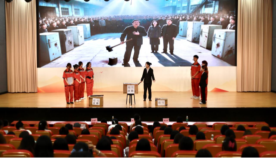 第三支团队以海尔集团”破茧重生事迹为蓝本,自主创作改革微剧本展现了张瑞敏以壮士断腕的决心抡锤砸缺陷冰箱,如同冰河解冻打破僵化制度,抓住改革开放的机遇,以敏锐嗅觉捕捉时代需求,开启质量管控与观念革新,持续创造出海尔“全方位开花”的商业传奇佳话