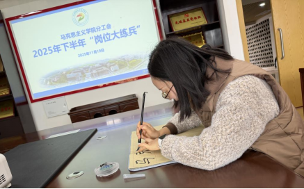 粉笔字、钢笔字、毛笔字,是师者素养的直观体现,更是中华优秀传统文化的瑰宝。为夯实教学基本功,营造积极向上的校园文化氛围。近日,马克思主义学院分工会在4A201会议室举办了一场教师基本功“岗位大练兵”书法比赛。来自分工会的教师齐聚一堂,以笔会友,以墨抒怀,共同奉献了一场精彩的文化盛宴。