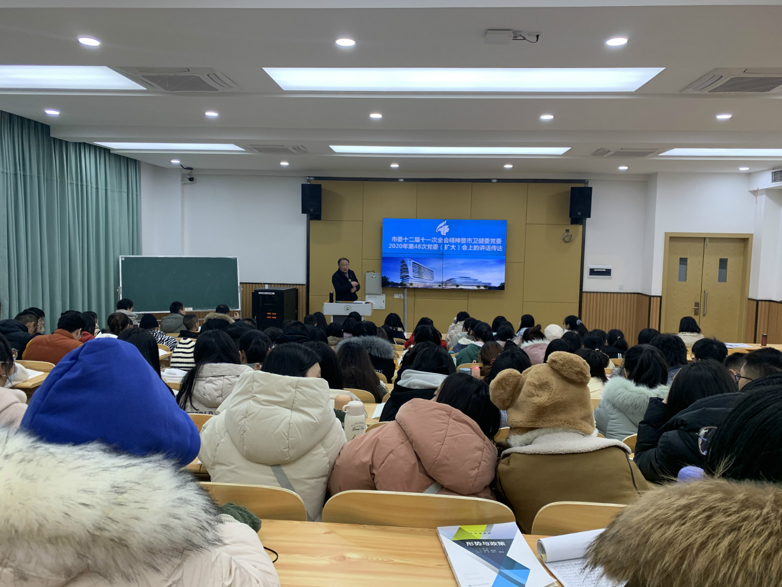 按照教育部关于通过“形势与政策”课开展党的十九届五中全会精神专题教学的通知,积极引导我院师生自觉把思想和行动统一到全会精神上来。1月8日下午,学院党委书记刘建辉走进“形势与政策”大课堂,为2020级针灸推拿1、2班学生及青年教师代表120余人宣讲党的十九届五中全会精神。