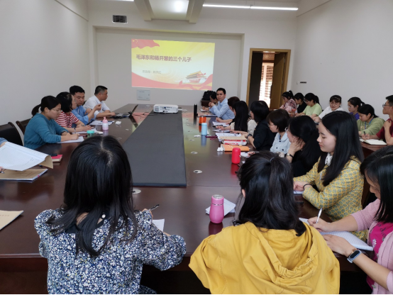 毛泽东与杨开慧的三个儿子。陈庆红同志从毛主席第一任妻子杨开慧这位巾帼英雄革命事迹出发,分别对其三个儿子毛岸英(长子)、毛岸青(次子)、毛岸龙(幼子)的成长经历进行了介绍。身处战乱漩涡里,毛主席与杨开慧的三个儿子在动乱中艰难地成长着,早早失去母亲颠沛流离,吃着百家饭长大的他们,即便生活非常困苦,但他们并未折损心中的意志,始终坚持活下去就要战斗到底的信念。从分享中大家了解到毛主席以及他的家人为中国革命事业做出了巨大的牺牲与贡献。