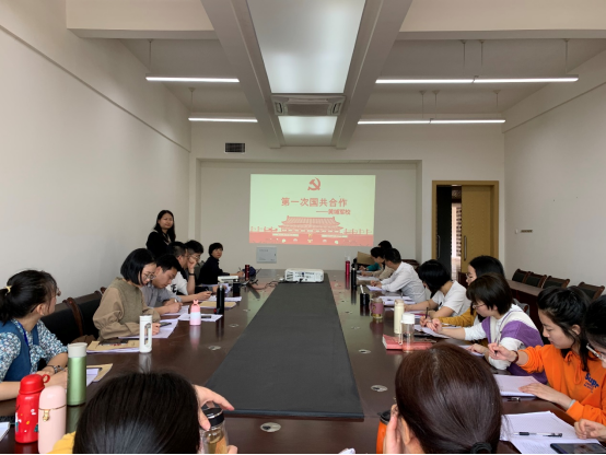 第一次国共合作成果——黄埔军校。1924年在共产国际推动下,为抗日战争和解放战争培养了一大批闻名于世的指挥官——黄埔军校在广州成立。曹卉同志带领大家从中国共产党角度重温第一次国共合作时期黄埔军校诞生的背景、原因以及对中国革命的影响,让大家深入了解黄埔军校特殊的历史意义和时代价值。