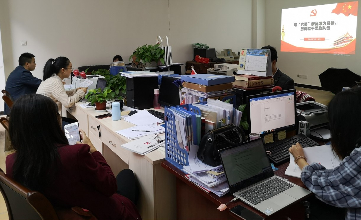 专题党课的主题是:以“六要”新标准为目标,历练精干思政队伍。以习近平总书记在全国学校思政课教师座谈会上强调的“六要”新标准为目标,深入分析目前思政部党支部各党员存在的思想、教学、科研等方面的问题,并提出解决的措施和办法。党员们认真聆听、深入思考。最后秦丹同志鼓励大家积极向上、团结齐心,为做好新时代的思政工作奋发努力!