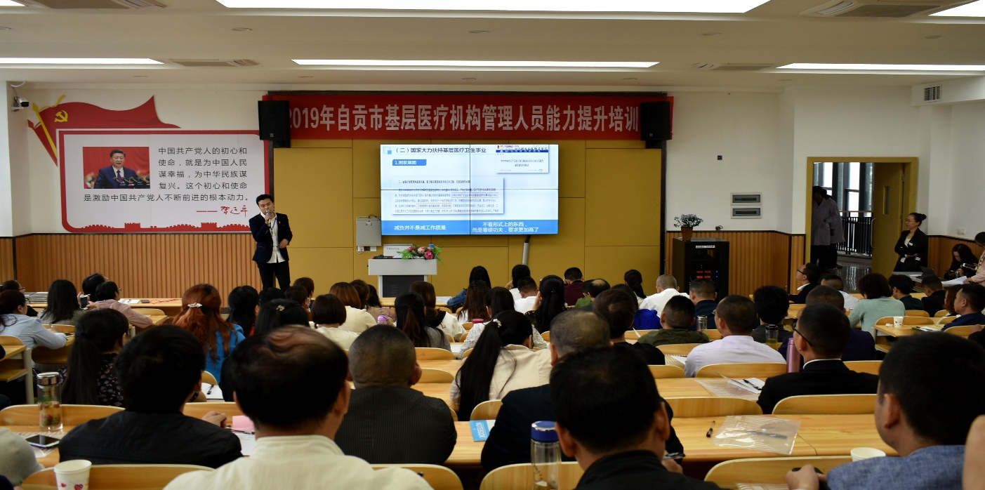 5月20日上午,思政部教师张家斗在学院1-B203为全市基层医疗机构管理人员讲授定制党课。市委组织部党教中心主任张劲,市基层医疗机构管理人员,学院党委办及思政部专兼职教师约200人参加了学习。