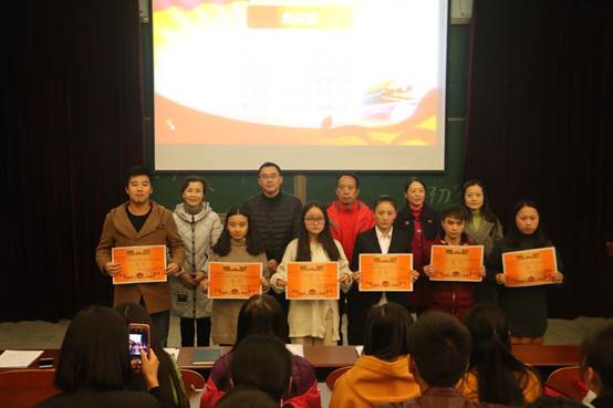 李茂首先宣读了获得“党史国情”知识竞赛的个人奖和团体奖名单,并对获奖个人和班级表示祝贺。接着,颁奖嘉宾对获得个人奖的33名同学和获得团体奖的6个班级进行了颁奖。
