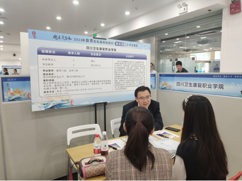 2023年10月10日,学校党委委员、副校长申奎带队赴重庆大学、西南大学参加毕业生秋季招聘活动,人事处(教师发展中心)处长(主任)李茂、临床医技学院院长蒲建萍、教育体育学院副院长唐胜云同行。在招聘现场,副校长申奎一行分别与2名博士研究生、20余名硕士研究生进行了面谈,收取简历22份。