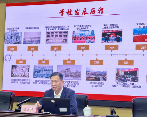 黄昌平校长从办学历史、仁济文化和学校未来三方面为青年教师介绍了学校校址、校名变迁、校训、办学精神、理念、服务定位、人才定位等内容,结合党的二十大报告、自贡市、学校的“十四五”发展规划、学校第二次党代会提出的奋斗目标,向青年教师提出希望,鼓励青年教师在“大仁求学,大医济人”的校训精神引领下,勇于担当时代重任,把握职业教育广阔前景和历史机遇,用求真务实的精神共同谱写学校发展新篇章,为学校高质量发展贡献青春力量。