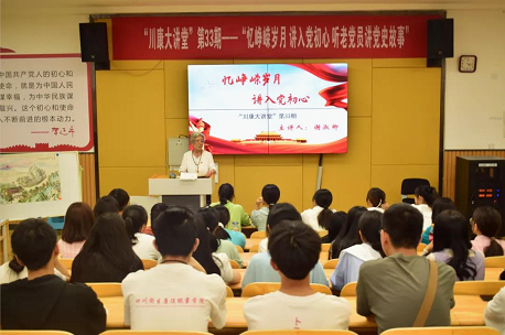 为丰富党史学习教育形式,以浓厚的学习氛围迎接中国共产党百年华诞,6月25日,学院团委在1-B205举行了“忆峥嵘岁月 讲入党初心”专题讲座。此次讲座邀请到我院退休教师谢淑卿为川康学子分享她的入党故事。
