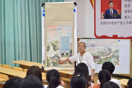 谢淑卿老师出生在旧中国,成长在红旗下,作为一名65年党龄的老党员,一直将“为党育人、为国育才、甘于奉献”作为她的入党初心。谢老师用亲身经历向同学们讲述了那个濒临“亡国灭种”的岁月,人们的生活苦不堪言,正是中国共产党的正确领导才解救了绝望中的人们。谢老师现年83岁,依然坚持着每天学习,而学习的主要内容便是中国共产党的光辉历程。并以诗歌、绘画的形式将自己的学习心得跃然纸上,始终践行于关心下一代成长的事业中。