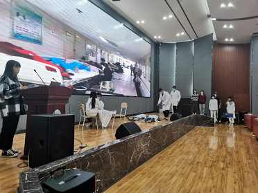一个个疲惫的面孔上有着深深的口罩印,烙印着整个民族的希望,情景结合的表演方式让同学们直观感受到新冠病毒的可怕,同时也被医务工作者的无私奉献精神所动容。