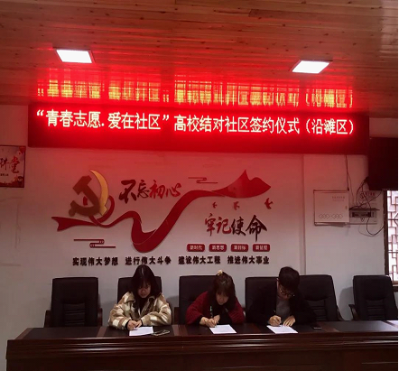 活动开始前,团委副书记王锐代表学院与沿滩区仙滩社区、詹井村、兴元路社区和周场社区签订结对承诺书,进一步加强与共青团沿滩区委在团学建设,社会实践与志愿服务等方面的校地合作。