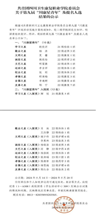 第九届川康新青年及提名人选名单出来了,跟随小团子的步伐来,看看都有哪些同学吧