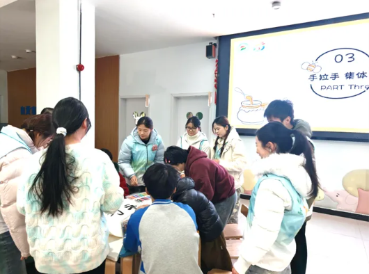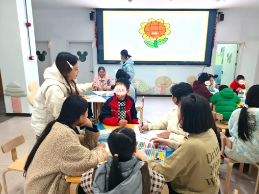 活动共分为三个环节。在“初识·共组团队徽章”中,志愿者引导孩子们分组设计团队图案、名称与口号,建立起初步的信任与合作意识。随后,“一笔一画·共绘向阳生机”环节让孩子们接力绘制向日葵与蝴蝶,象征生命在关爱中茁壮成长、破茧成蝶。最后,“手拉手·同绘骏马迎新春”集体创作将活动推向高潮,所有参与者共同绘制骏马主题画作,并签名寄语未来,寓意携手奔向充满希望的新一年。
