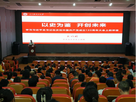 为深入学习贯彻习近平总书记“七一”重要讲话精神,推动学院党史学习教育深入开展,9月28日下午,学院邀请了市委宣讲团成员、四川轻化工大学马克思主义学院思政系主任、高等教育研究所副所长彭均国副教授来院作专题宣讲。