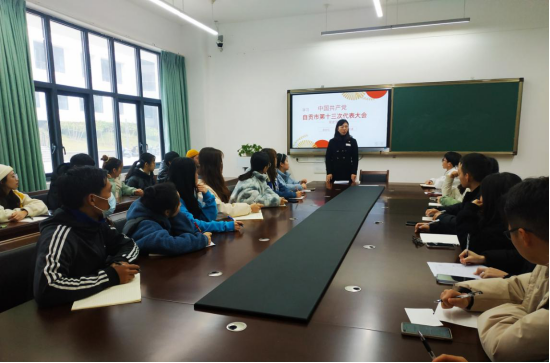 12月3日,中共自贡市第十三次代表大会党代表、taptap点点体育康复学院副院长谢文贤为学生宣讲市十三次党代会精神。