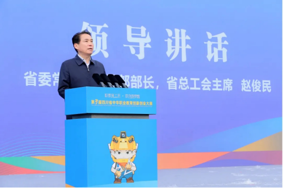 4月10日,省委常委、统战部部长、省总工会主席赵俊民莅校调研,详细听取了学校办学整体情况汇报,实地查看了专业发展及创新创业成果展示,考察了铸牢中华民族共同体意识教育基地、统战之家、教育体育学院实训场地建设情况,与民族学生、留学生、民主党派代表进行了亲切交谈,出席了第三届四川省中华职业教育创新创业大赛闭幕式并讲话。