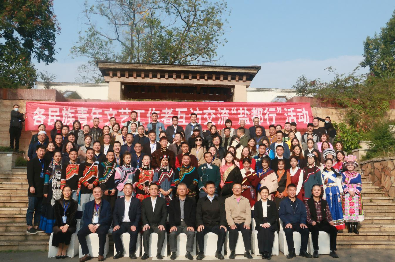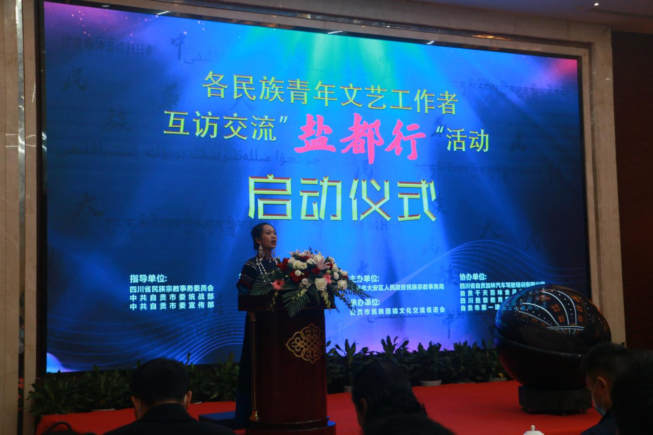 11月16日上午,由省民宗委、市委统战部、市委宣传部、市民宗局、市广电和旅游局、团市委指导,省民宗委相关领导、甘孜、阿坝、凉山、泸州、宜宾、乐山等市州民宗、文广旅游、团委等部门带队领导和各民族青年文艺工作者参加的各民族青年文艺工作者互访交流“盐都行”活动启动仪式暨新时代民族文化文艺发展交流论坛正式举行。