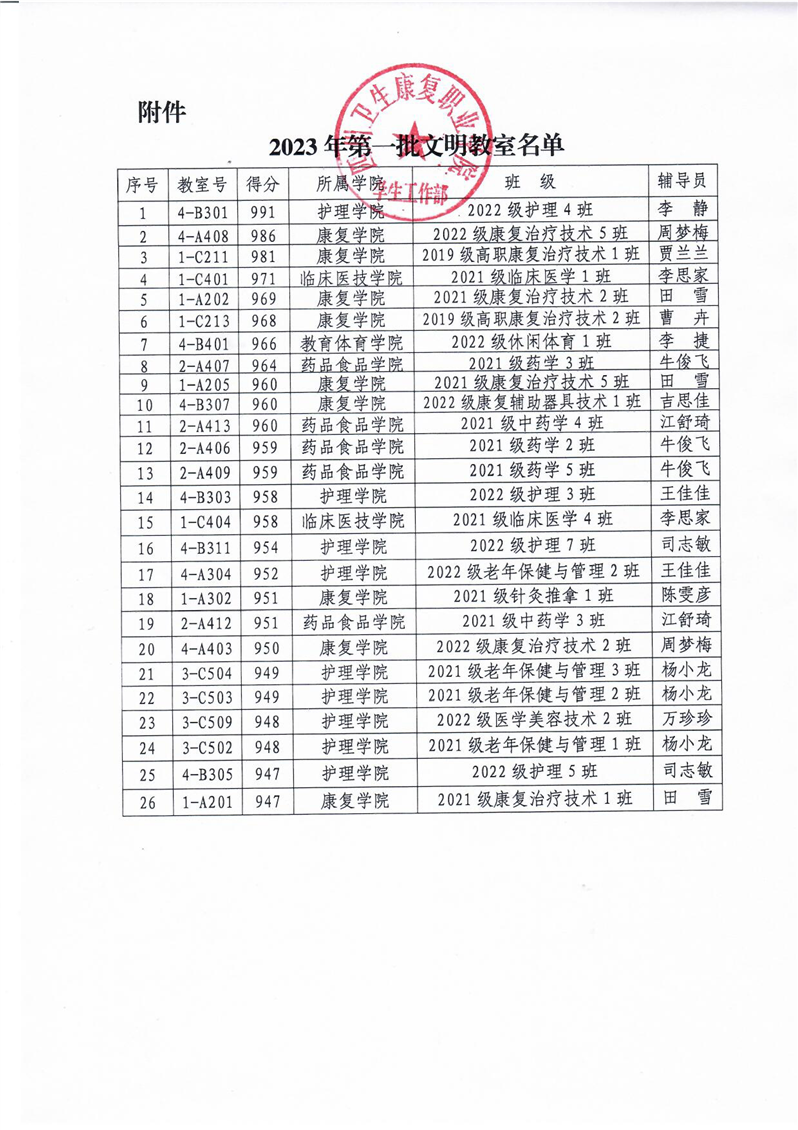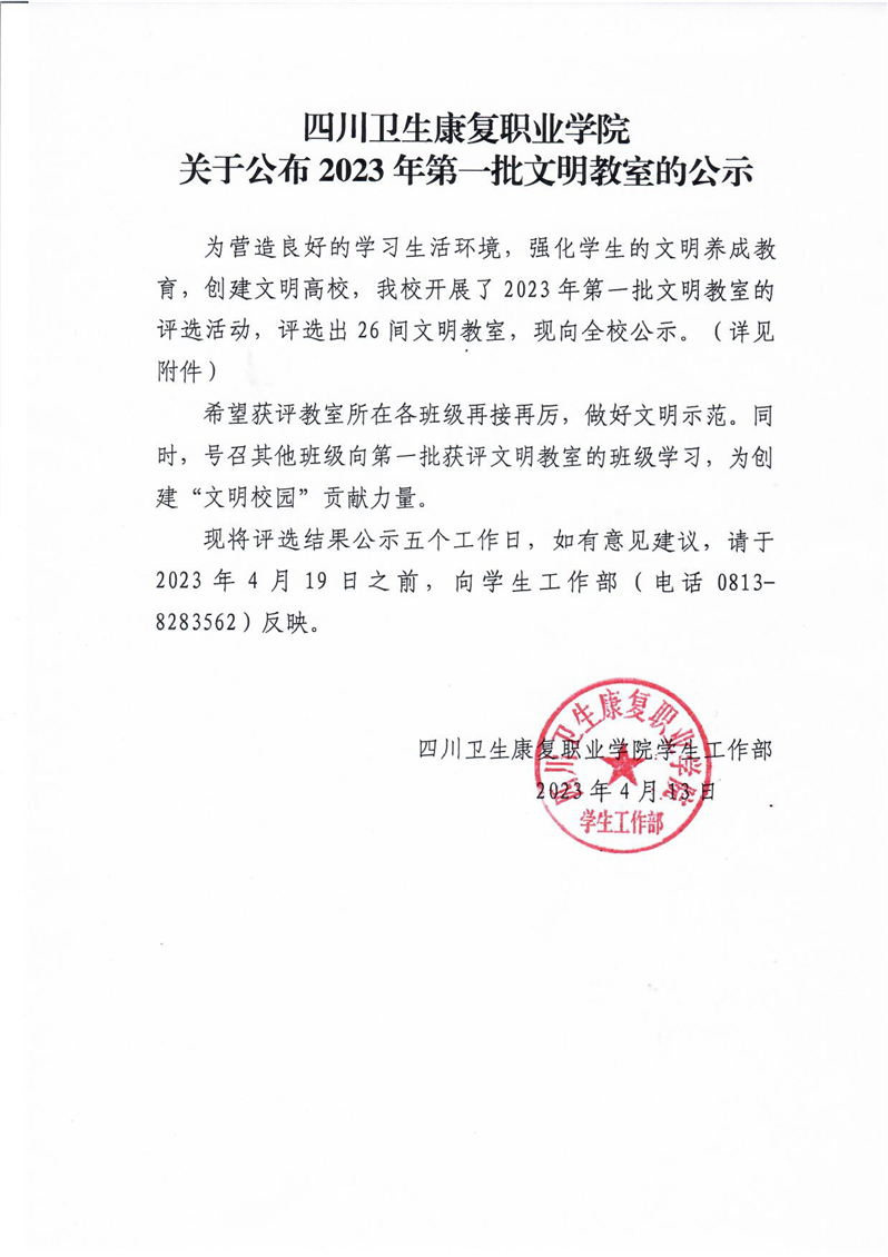 关于公布2023年第一批文明教室的公示