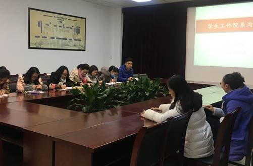 临近期末,为全面做好最后学期末期间的学生工作,学生工作部于1月11日15:00在二会议室召开本学期最后一次学生工作院系沟通会,本次会议由黄昌平副院长主持,学工部副处长陈余梅和部分工作人员、康复系副主任秦丹、各系部学工干事等13人参加会议。