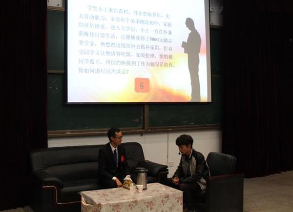 本次大赛分初赛和决赛,初赛内容为基础知识笔试和自我介绍及工作展示两项内容;决赛包括学生情况熟知测试、主题演讲和谈心谈话情景再现三项内容。基础知识测试主要考核辅导员思想政治教育理论及法律法规、班级日常管理及博文写作等知识。自我介绍及工作展示将辅导员们的个性特点与班级工作的实际效果相结合。学生情况熟知测试是难度系数较高的项目,要求辅导员根据随机抽取的三名学生姓名,在规定时间回答出该生的性别、班级、家庭住址、性格、职务及奖助学金获得情况等基本信息,此环节考察了辅导员对其所带学生基本情况的把握程度,测试结果显示taptap点点辅导员熟知所带学生,不仅能回答出学生的基本情况,甚至连学生性格特点都能熟悉得胜似家人,充分体现了“一口清”的工作要求。在主题演讲环节,辅导员们更是将对工作的激情与对学生的关爱展现得淋漓尽致。而当比赛进行到最后一轮谈心谈话环节就更为精彩,辅导员们与学生现场互动,或是春风化雨润心田,或是语重心长促警醒。察言观色而又情真意切,妙语连珠而又任重道远。辅导员的精彩表现得到了评委充分肯定和观众们的阵阵掌声。