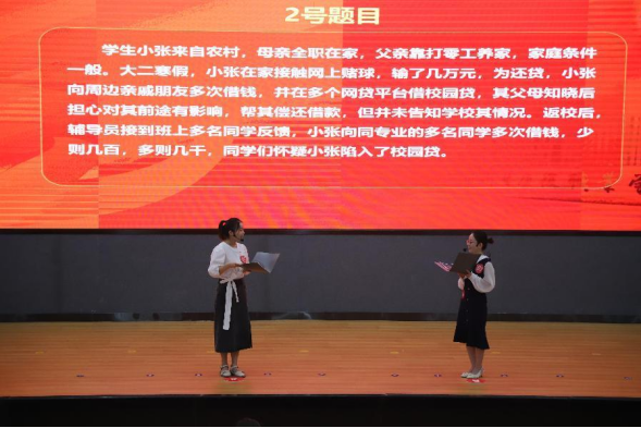 本次决赛参照四川省高校辅导员素质能力大赛的赛事流程,结合学校团学工作实际和辅导员队伍建设现状,设置案例研讨和谈心谈话两个环节,重点考察辅导员对带班学生思想、学习、生活、心理、家庭等方面的掌握情况以及综合运用理论分析问题、研判问题、解决问题的能力。