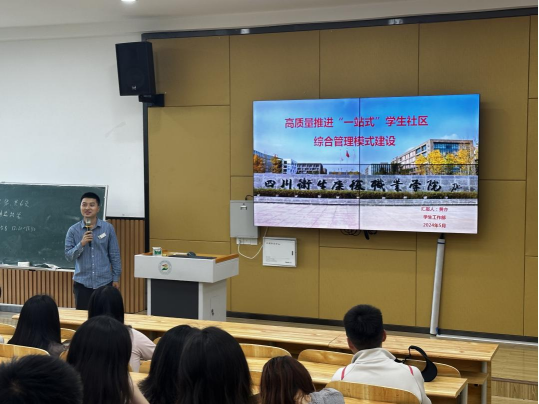 学生工作部黄亦老师围绕“一站式”学生社区建设的制度和工作方案进行了讲解。药品食品学院李明老师以辅导员的角度,分享辅导员在“一站式”学生社区中的角色定位与能力构建和其他高校的典型经验交流和案例分析等进行了深入浅出的讲解。会上,各二级学院也结合自身专业特色,分享了学院“一站式”社区建设构想与工作进度。