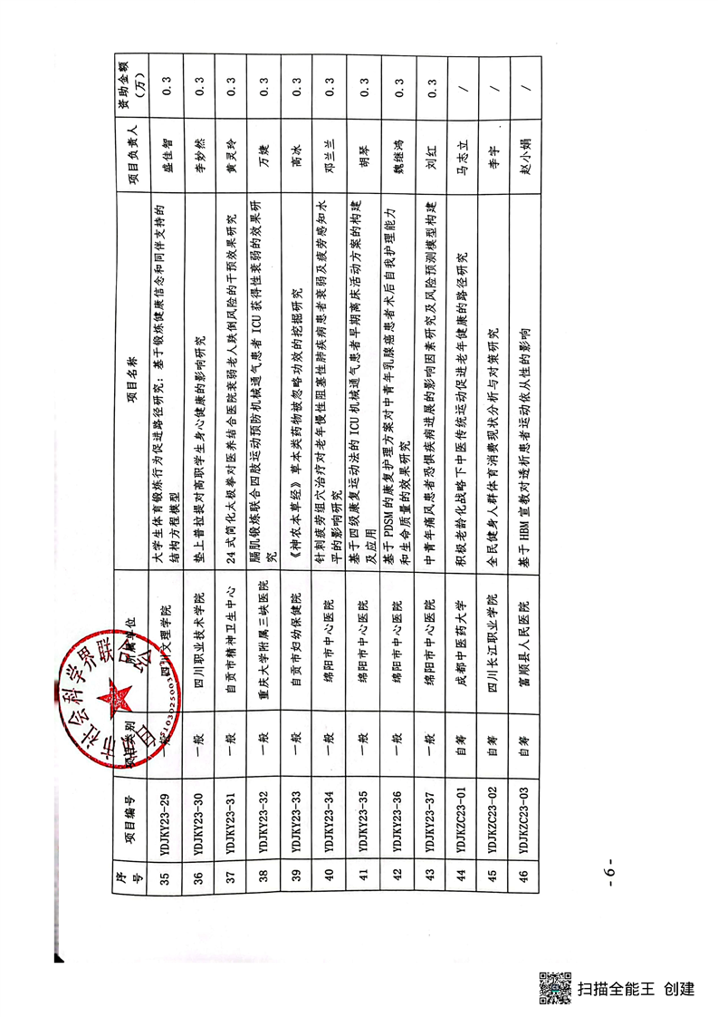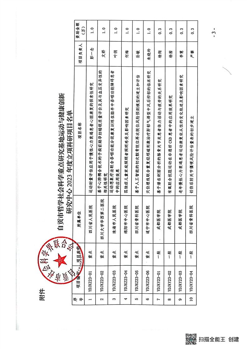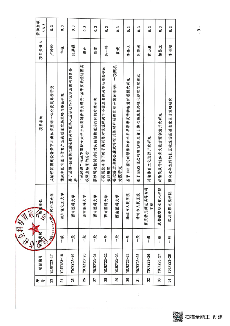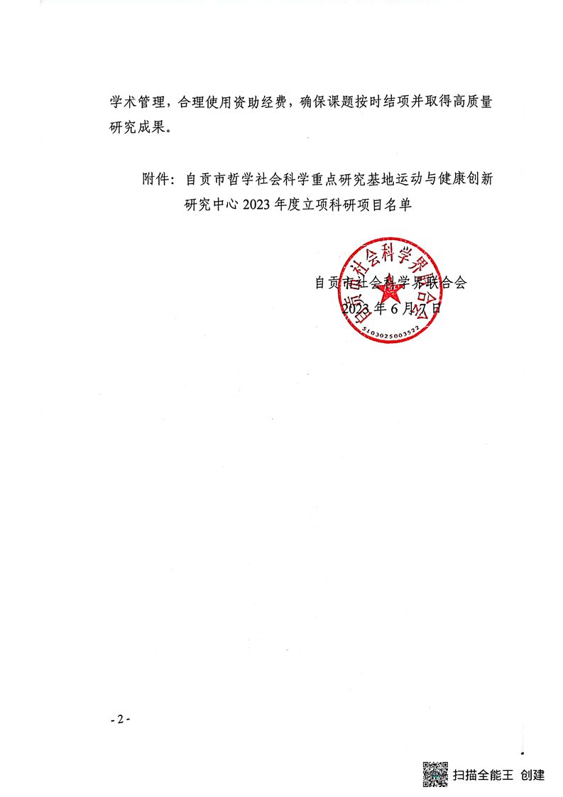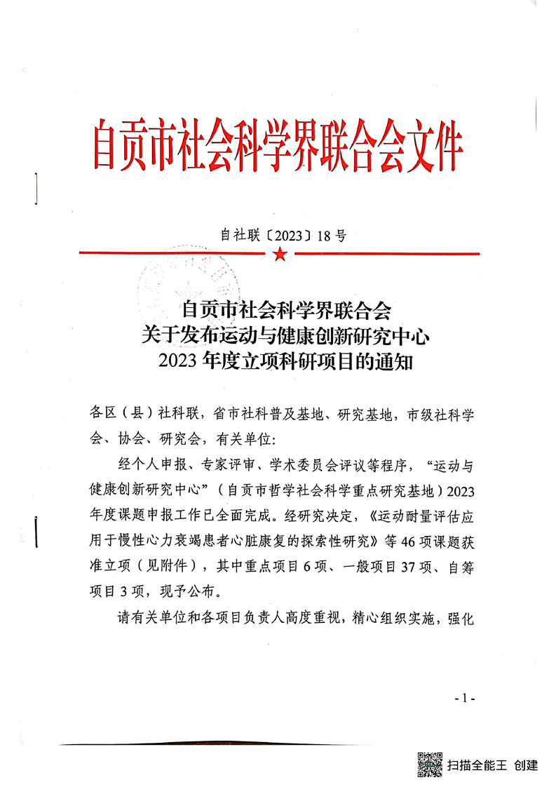 【立项通知】关于运动与健康创新研究中心2023年科研项目立项的通知