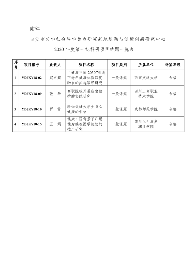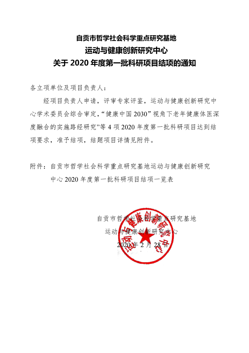 运动与健康创新研究中心关于2020年度第一批科研项目结题的通知