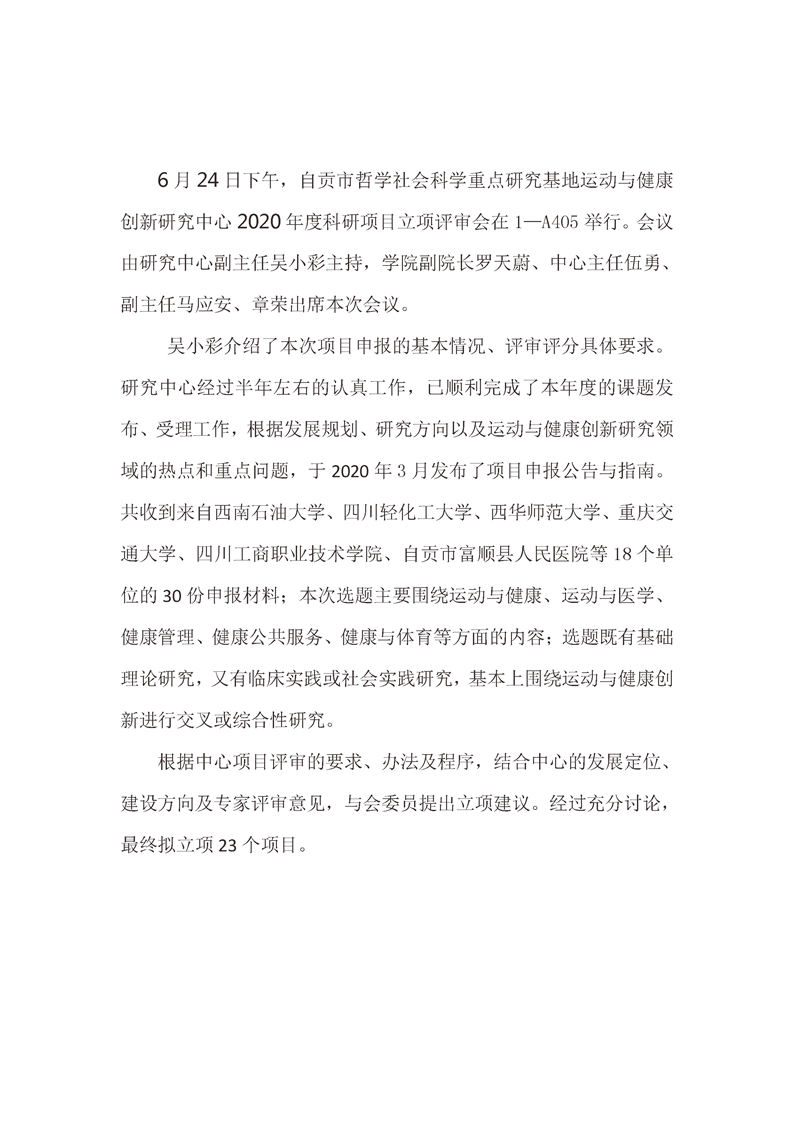 运动与健康创新研究中心2020年度科研项目 立项评审会成功举行