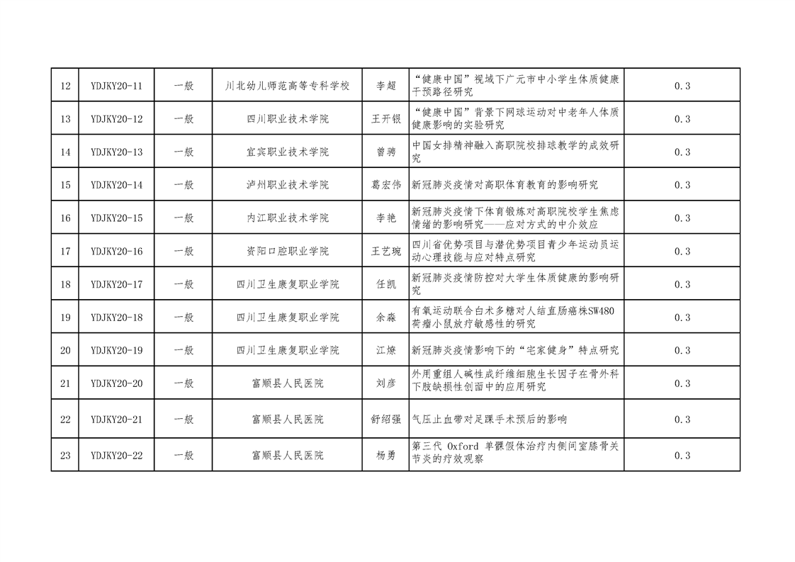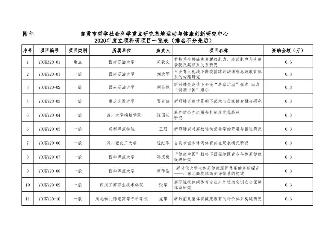 关于发布运动与健康创新研究中心2020年立项科研项目的通知