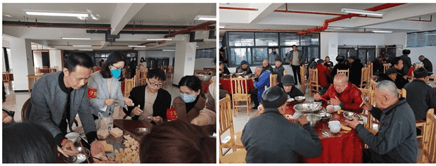 另一队志愿者则负责准备爱心午餐,志愿者们在敬老院厨房里面忙个不停,调料、和馅、包抄手、下锅煮......。午饭时分,一锅接一锅冒着热气的抄手被端上了桌,老人们都露出了心满意足的笑容,志愿者们也从中收获了“助人”的快乐。