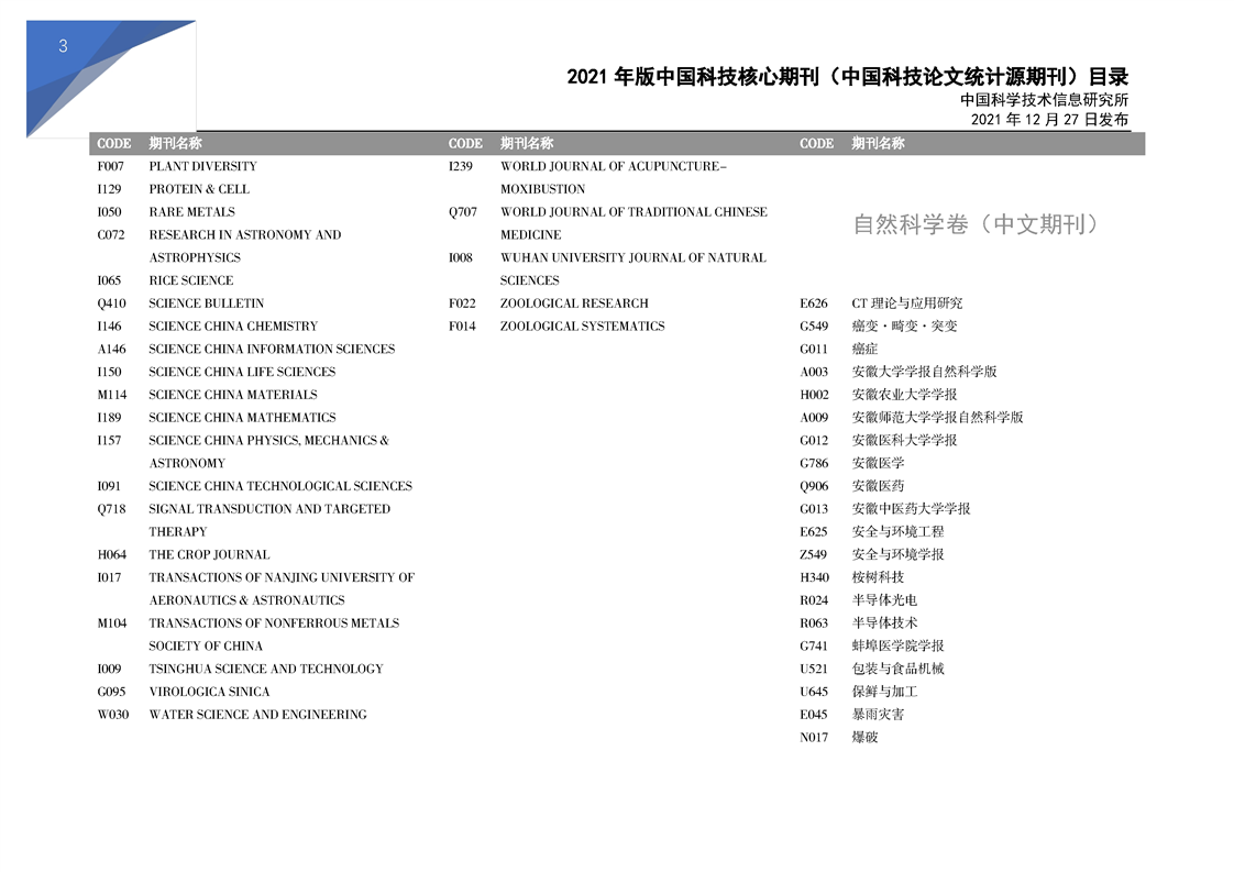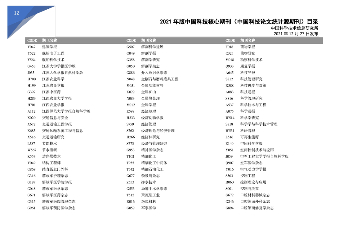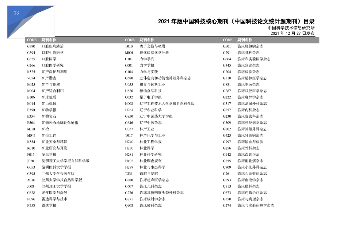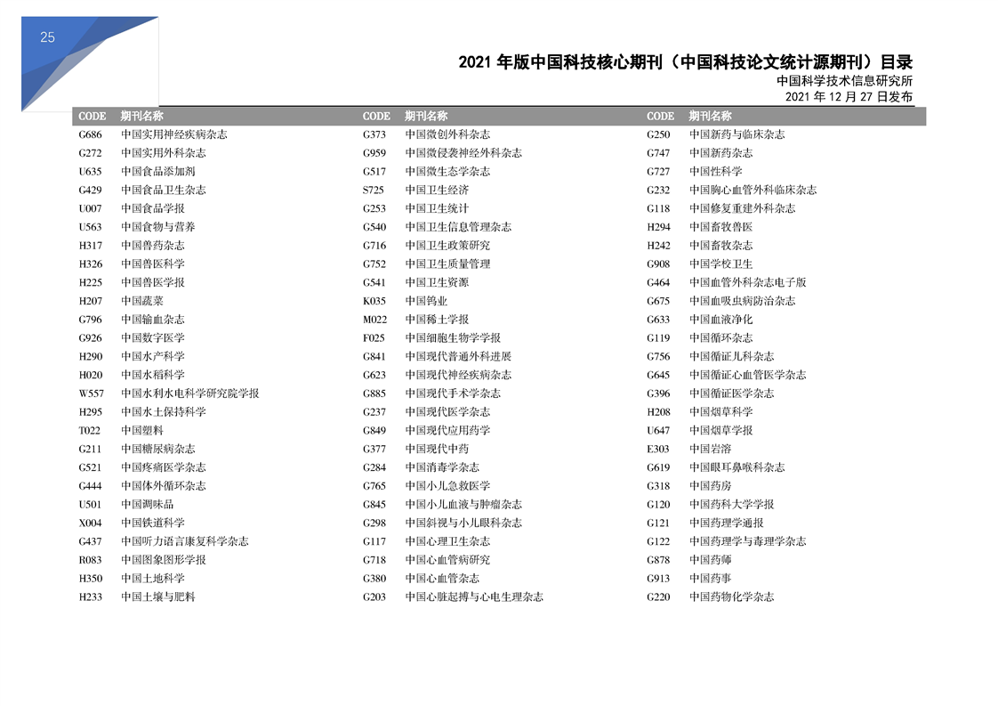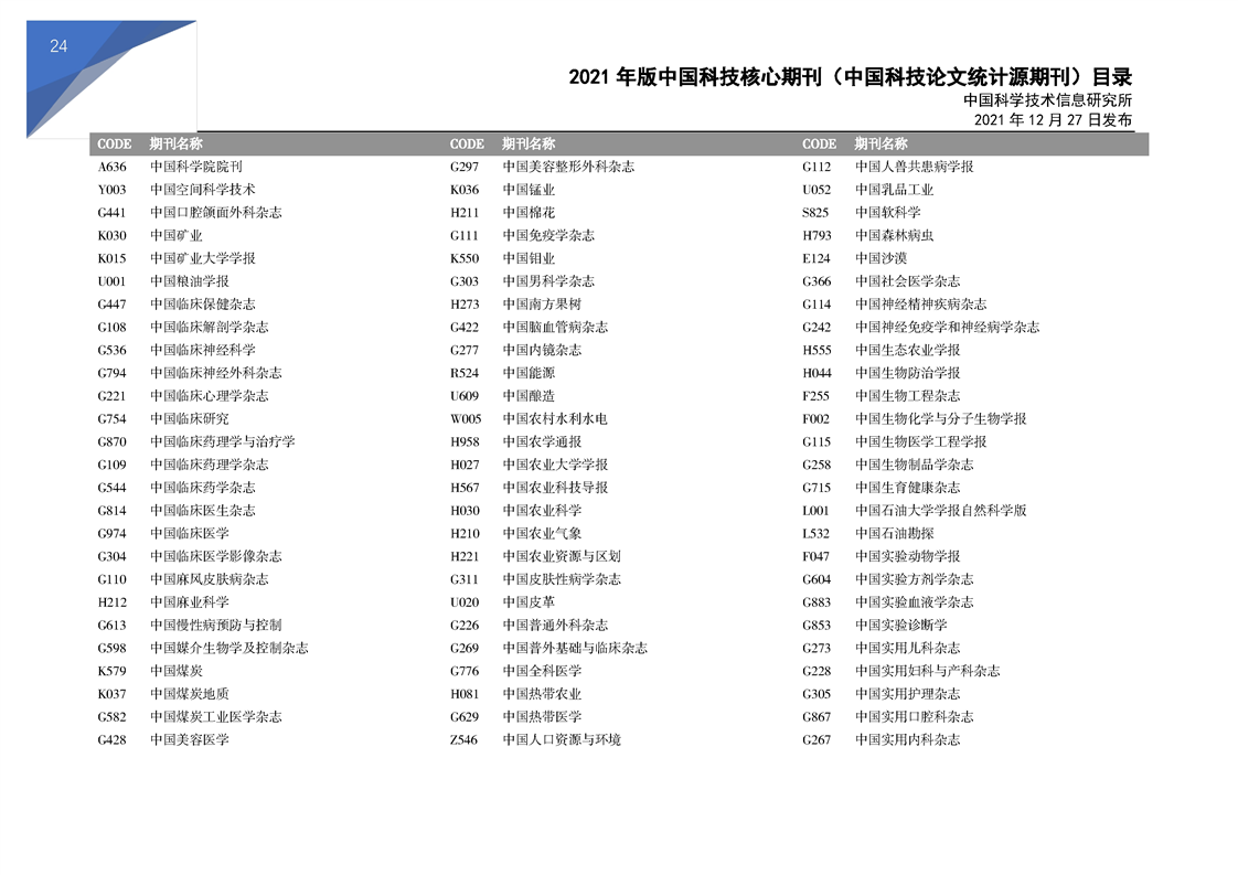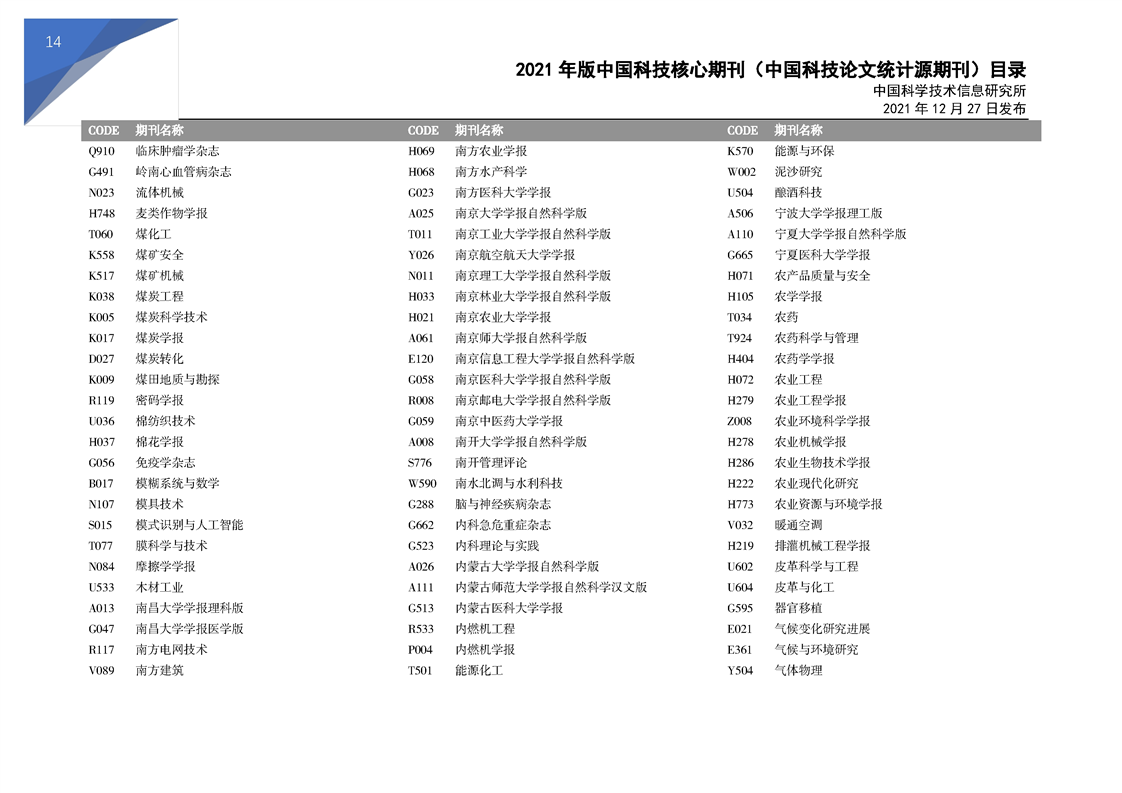 2021版科技核心期刊目录