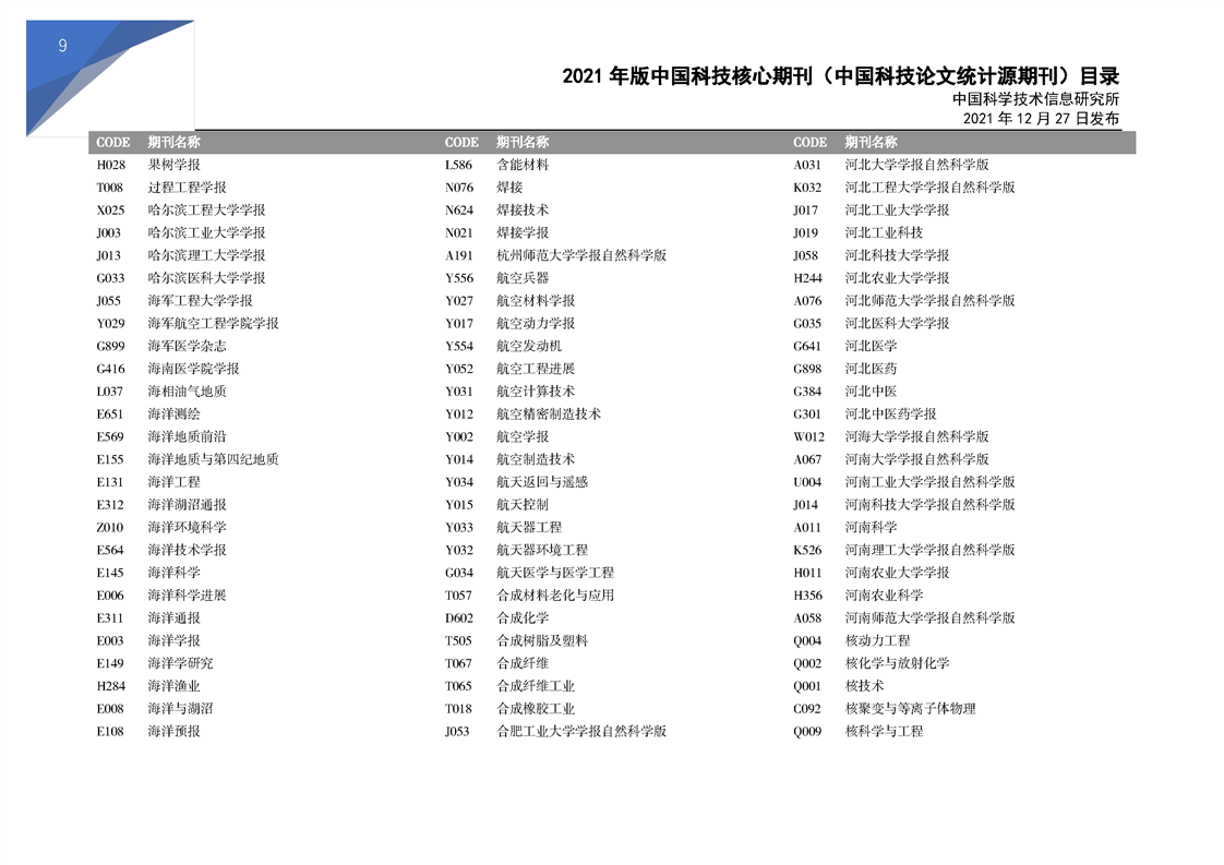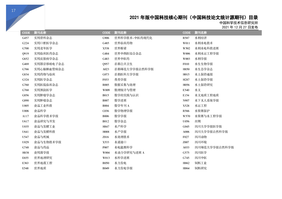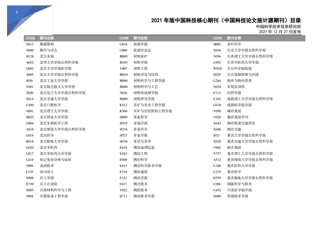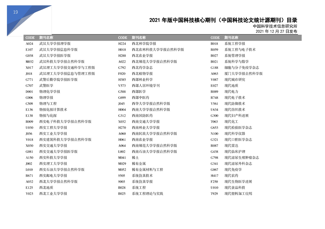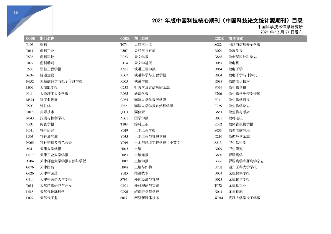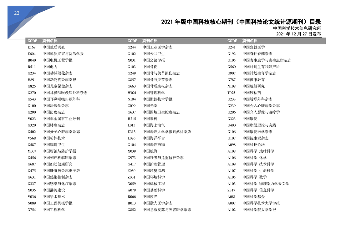 2021版科技核心期刊目录