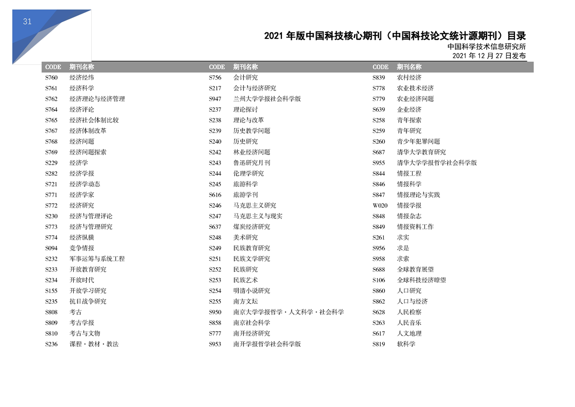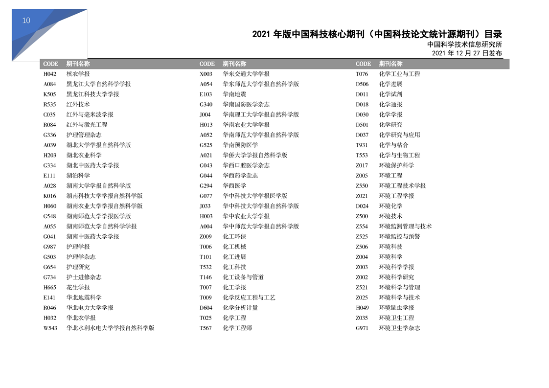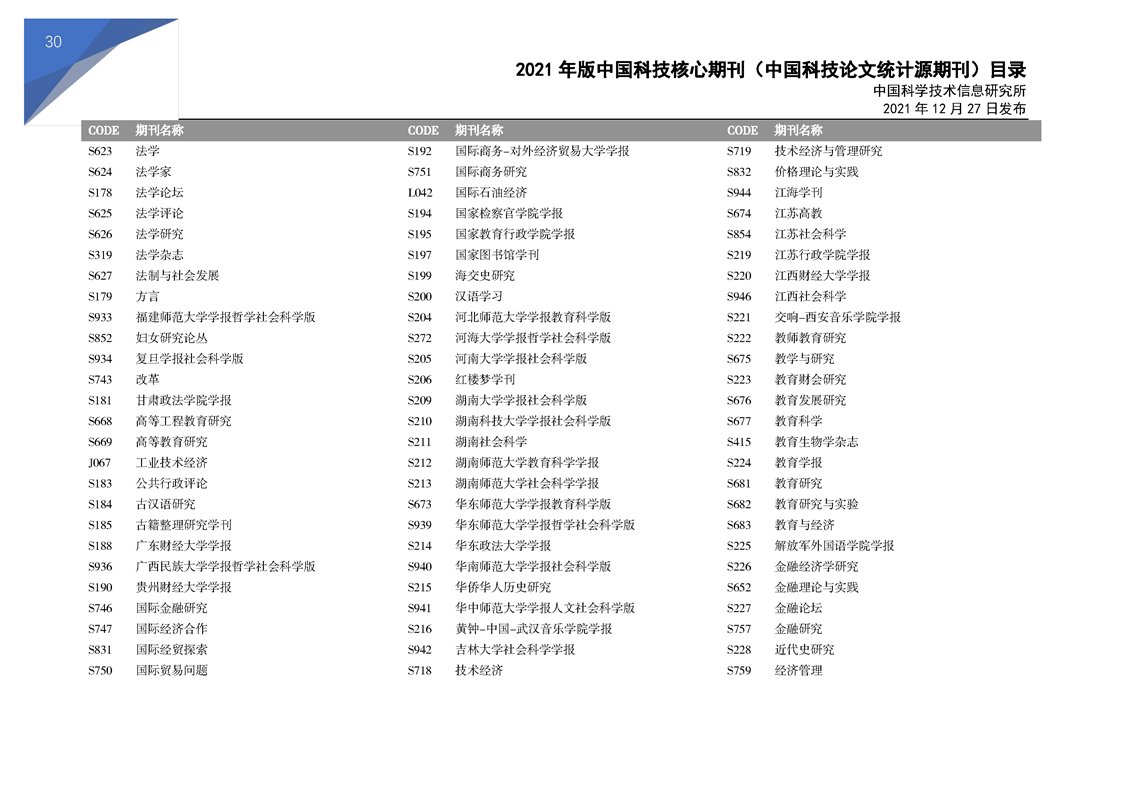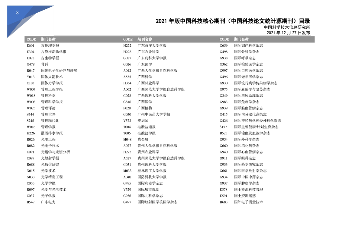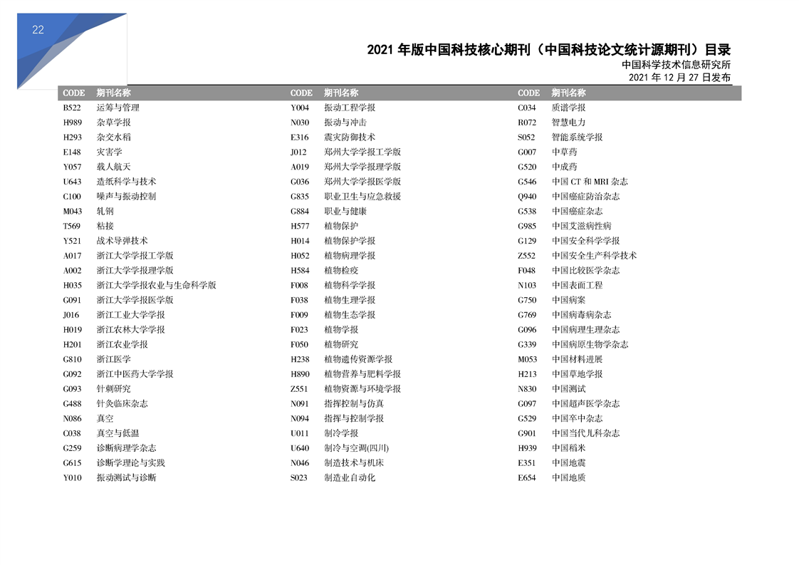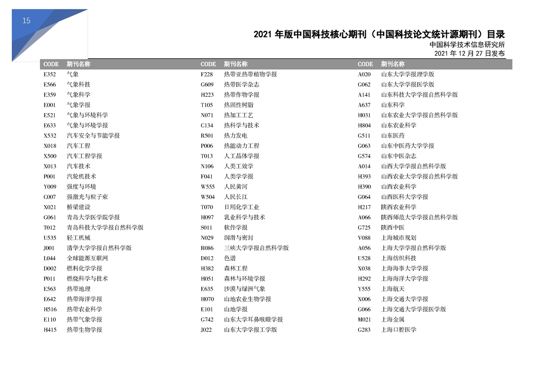 2021版科技核心期刊目录